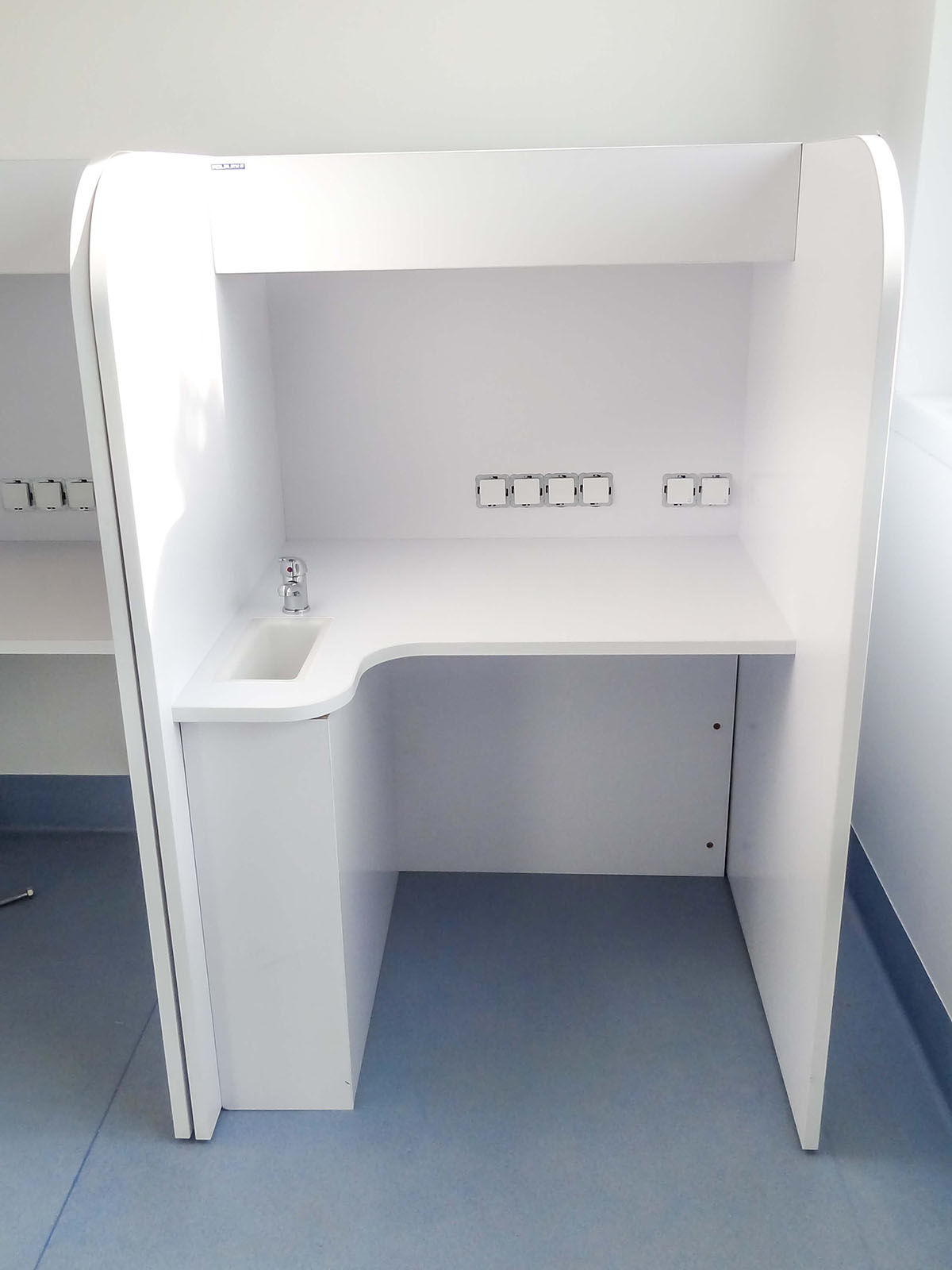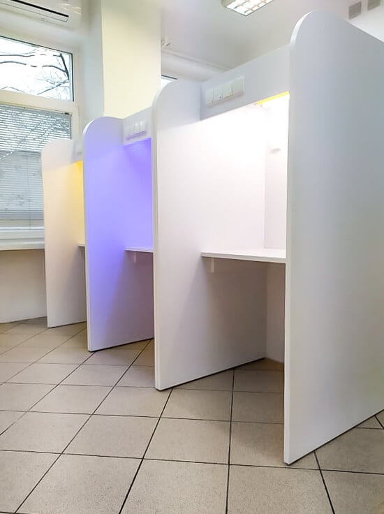 Posiadamy stanowiska przeznaczone do oceny zbiorowej i indywidualnej. Nasze meble są szczegółowo dopracowywane. Zapewniają komfort pracy oceniających. Przy ich konstrukcji bierzemy pod uwagę wymogi związane z przeprowadzaniem analiz sensorycznych. Oferujemy rozwiązania ułatwiające przeprowadzanie analiz. W zależności od charakteru badań opcjonalnie oferujemy zlewy z baterią, szuflady na klawiaturę, półki na komputer i dodatkowe oświetlenie, jarzeniowe lub LED.